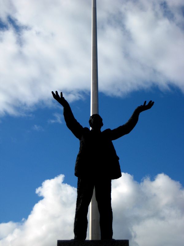 My uncle and I headed into the city to run some errands for my grandmother who lives one block from O’Connell Street in Dublin City Center. Quite convenient huh? As we were walking down to the bank we walked by this statue of a hand that is behind these tall black gates that are usually locked.