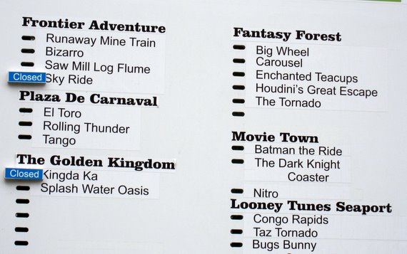 We maneuvered our way through some light crowds and on our last turn and straight away to the entrance of Kingda Ka, we see a sign that says Kingda Ka – CLOSED. NO!!!