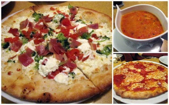 I started off with a really tasty Roasted Red Pepper & Chicken soup. For our dinner we thought it would be smartest to order two regular sized pizzas and share them. Billy ordered a traditional cheese pizza while Aubrey and I ordered a pizza called the Primavera (Broccoli, fresh tomatoes, ricotta, prosciutto, fresh mozzarella, garlic and oil).